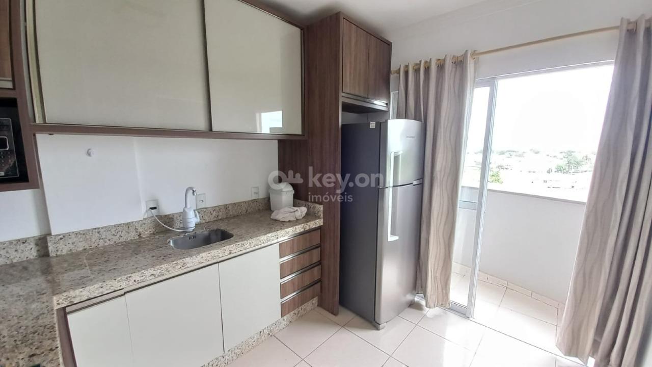 Apartamento mobiliado no bairro São Clemente em Tubarão/SC, contendo 3 quartos, sala e cozinha conjugadas, banheiro, área de serviço, sacada e vaga de garagem.