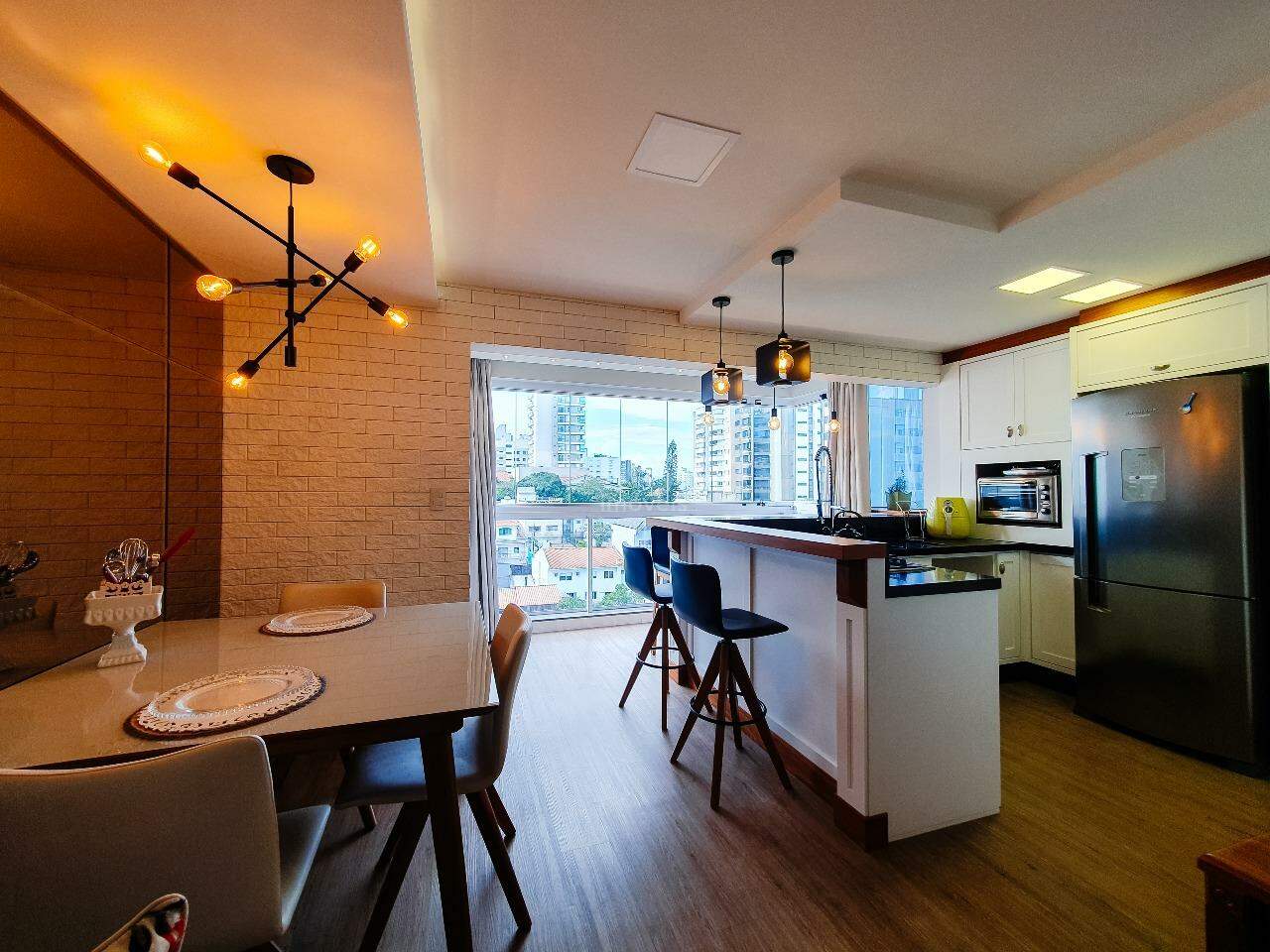 Sacada ampla com churrasqueira a carvão, perfeita para momentos de lazer;
