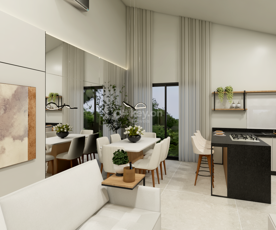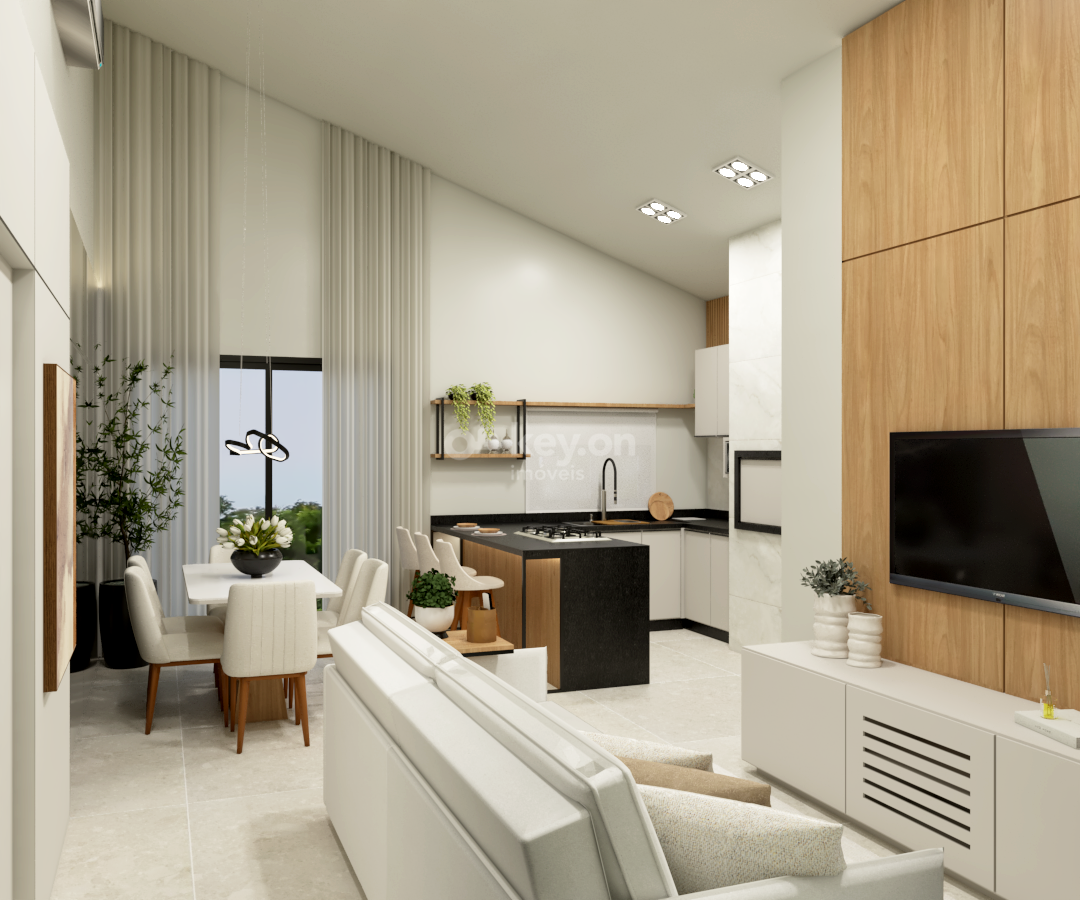 Sala e Cozinha Conjugadas: Ambiente integrado, amplo e iluminado, ideal para momentos de convivência.