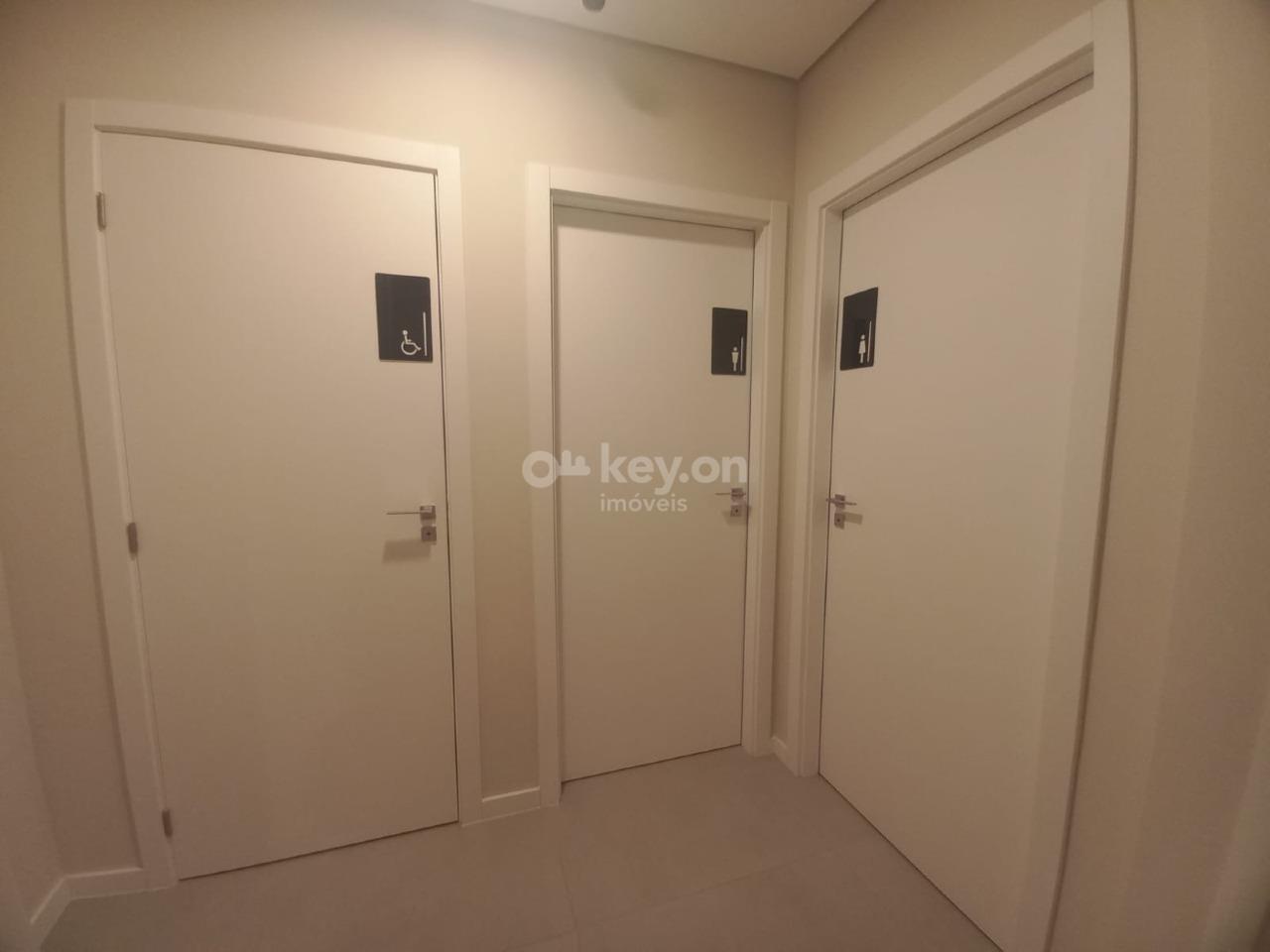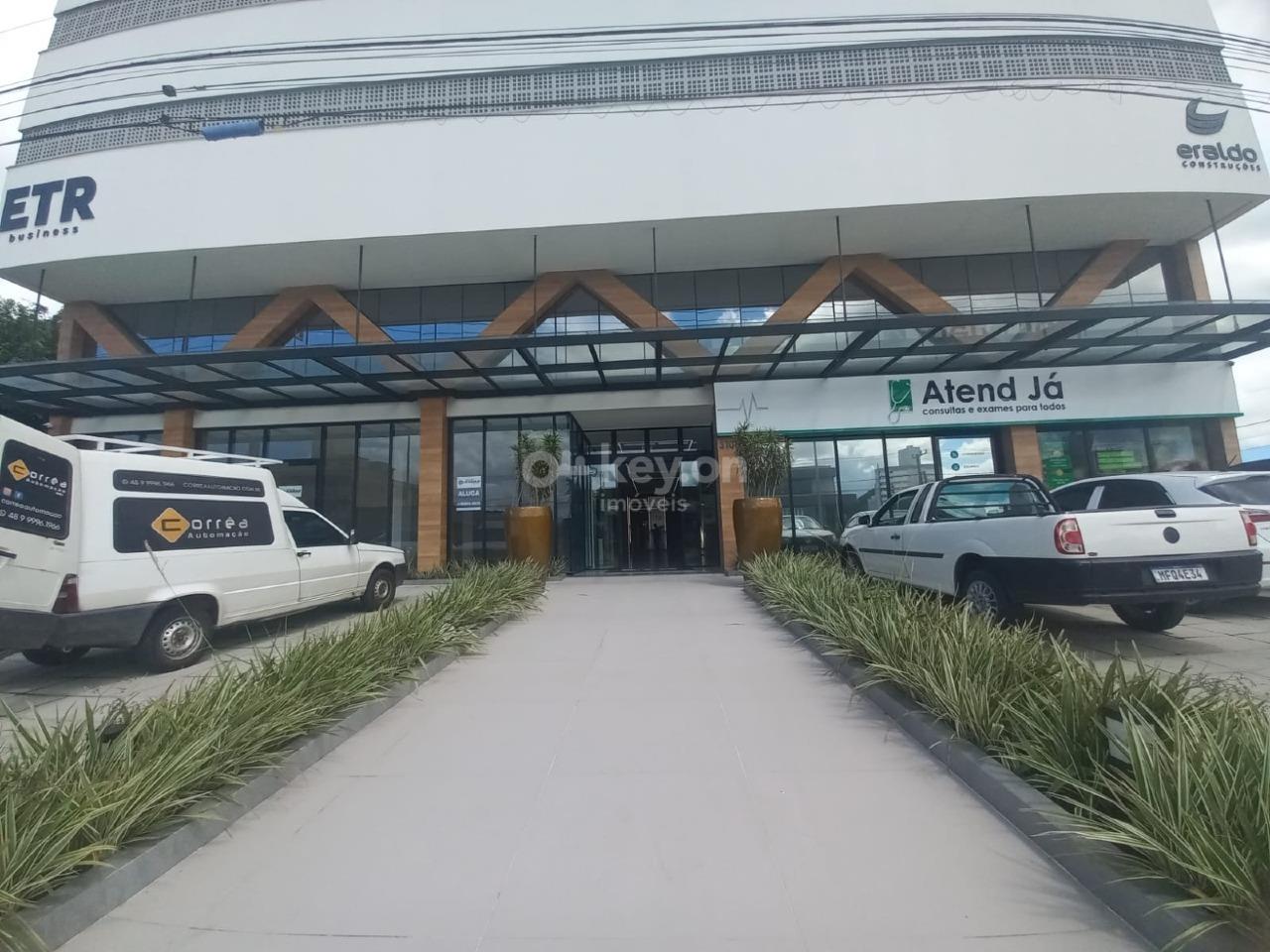 Sala comercial dupla localizado na Avenida Av Marcolino Martins Cabral, Vila Moema, Tubarão – SC, medindo 45m² com banheiro, piso porcelanato, gesso, espera para ar condicionado e vaga de garagem.
