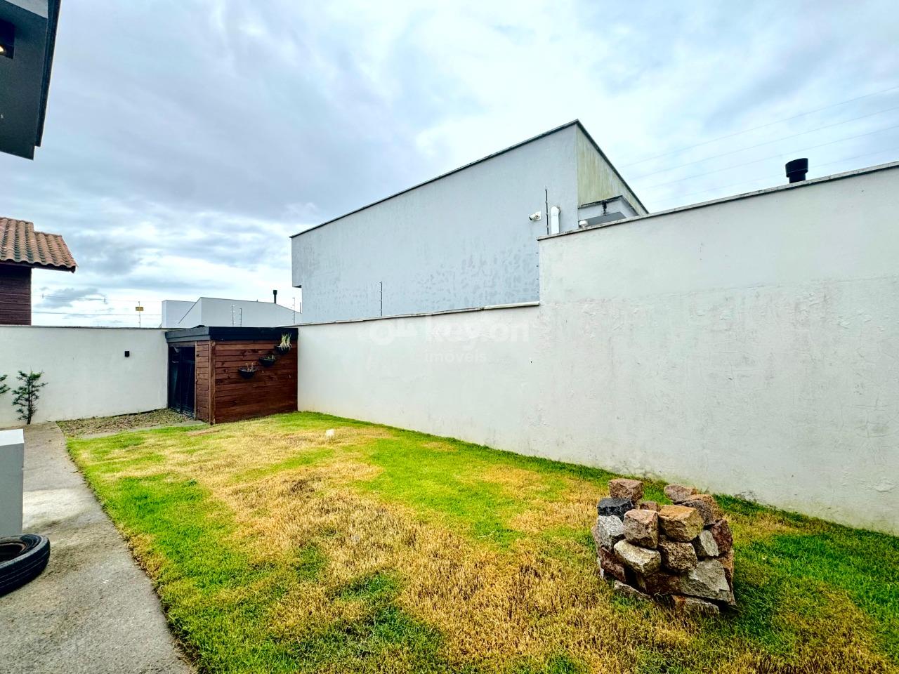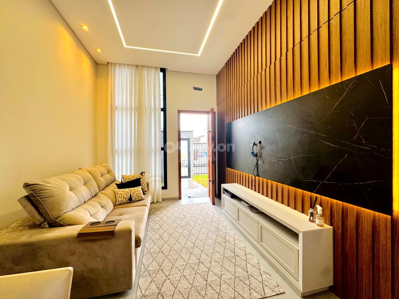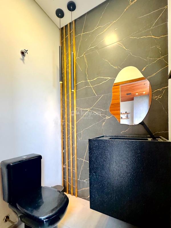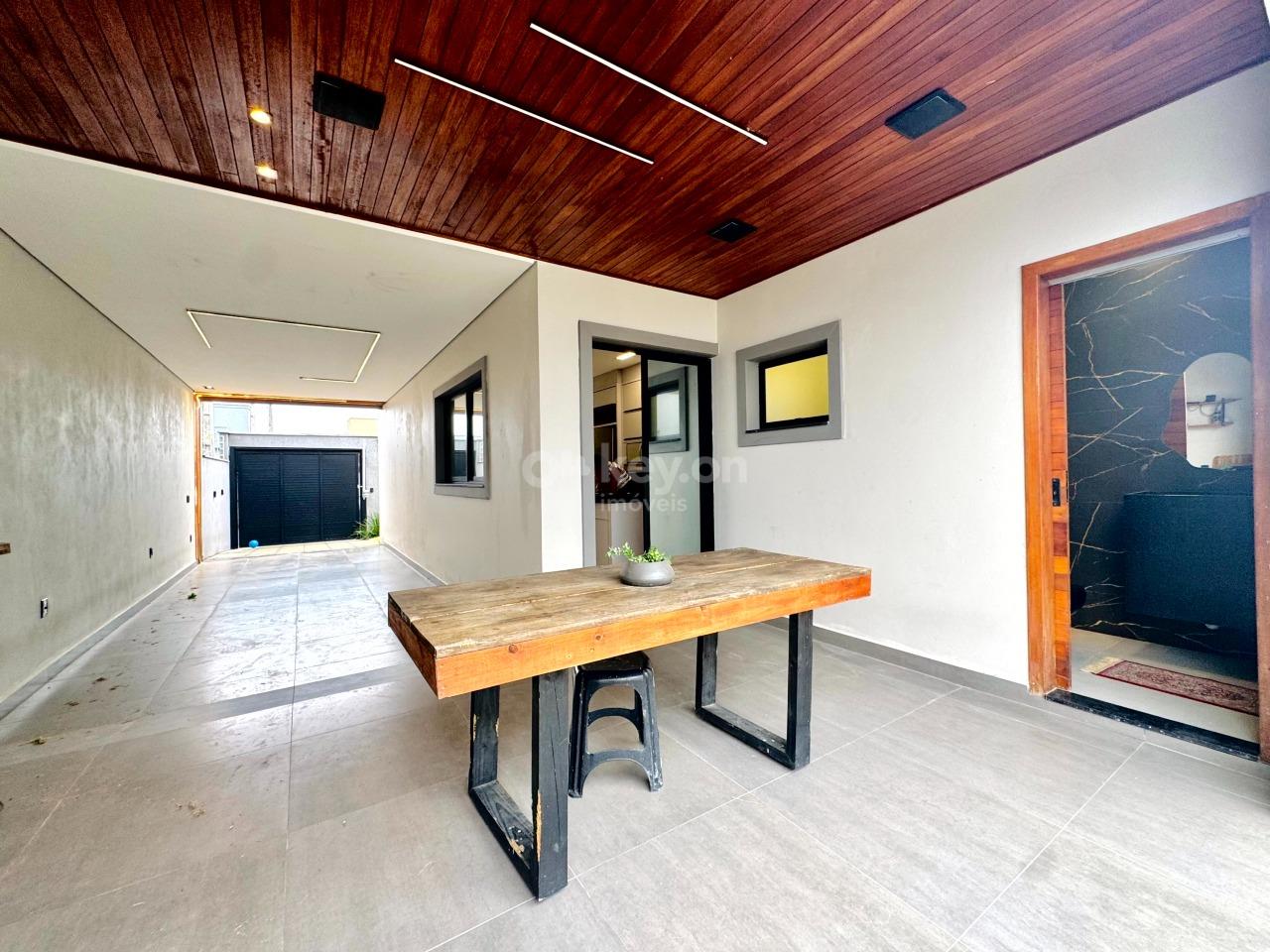 A casa oferece excelente padrão de acabamento, contando com janelas automatizadas, pisos em porcelanato, paredes com calfino, gesso, e área gourmet com forro em madeira Guarapeira — mesma madeira utilizada na porta frontal. Dispõe ainda de cerca elétrica, pré-instalação para piscina e espaço projetado para a construção de uma suíte.