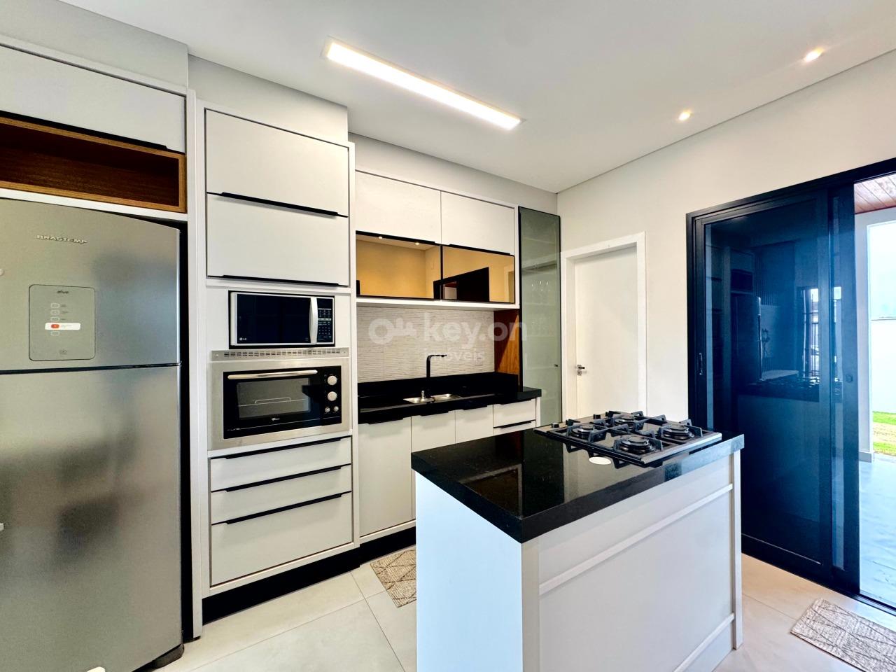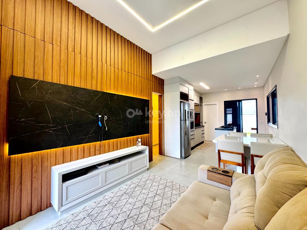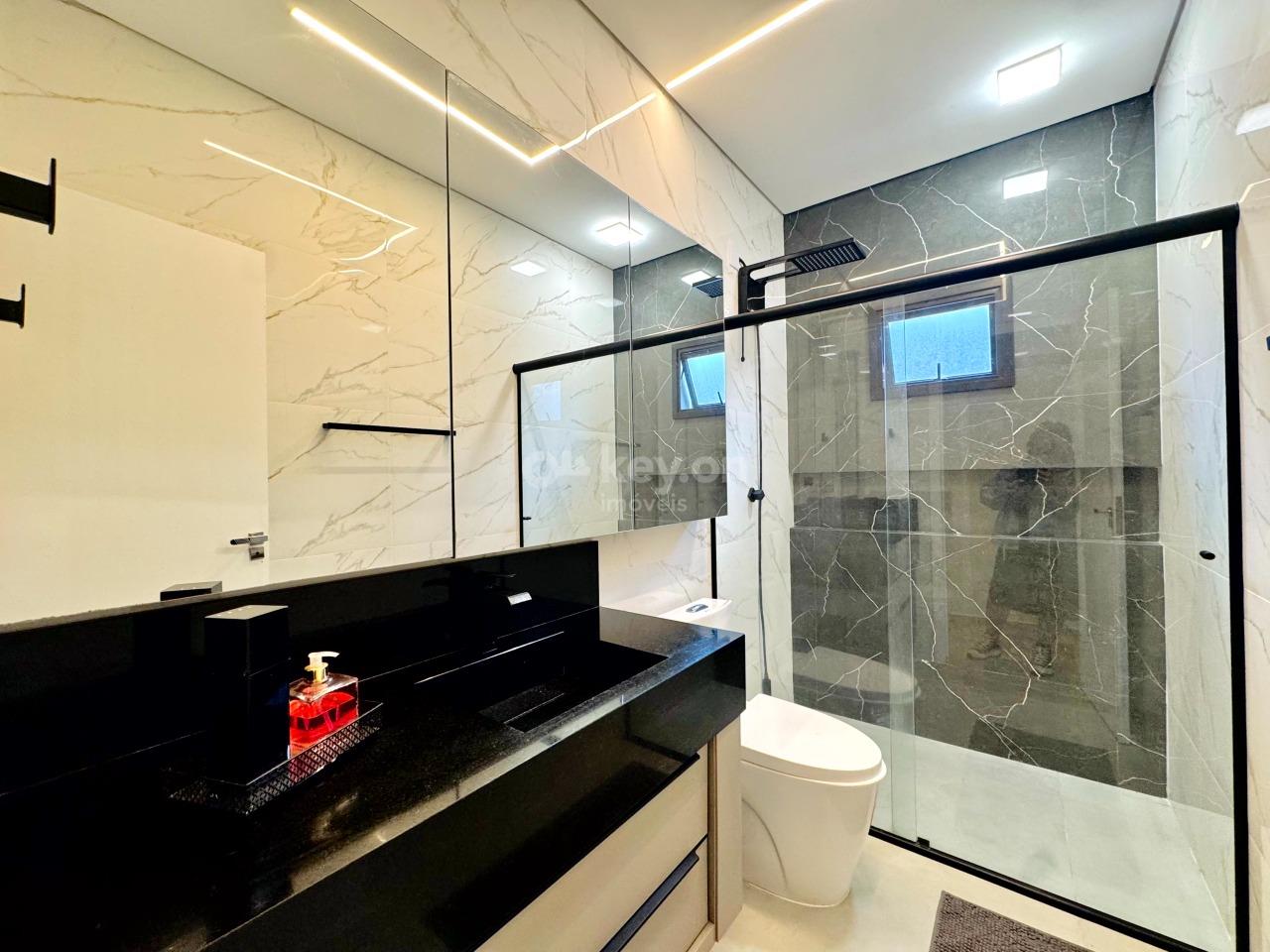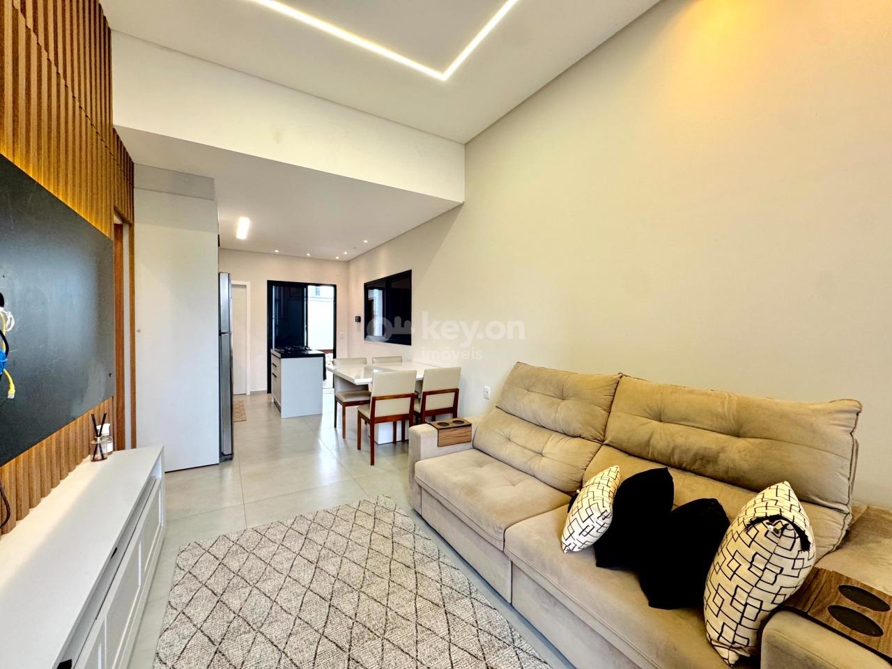 A casa oferece excelente padrão de acabamento, contando com janelas automatizadas, pisos em porcelanato, paredes com calfino, gesso, e área gourmet com forro em madeira Guarapeira — mesma madeira utilizada na porta frontal. Dispõe ainda de cerca elétrica, pré-instalação para piscina e espaço projetado para a construção de uma suíte.
