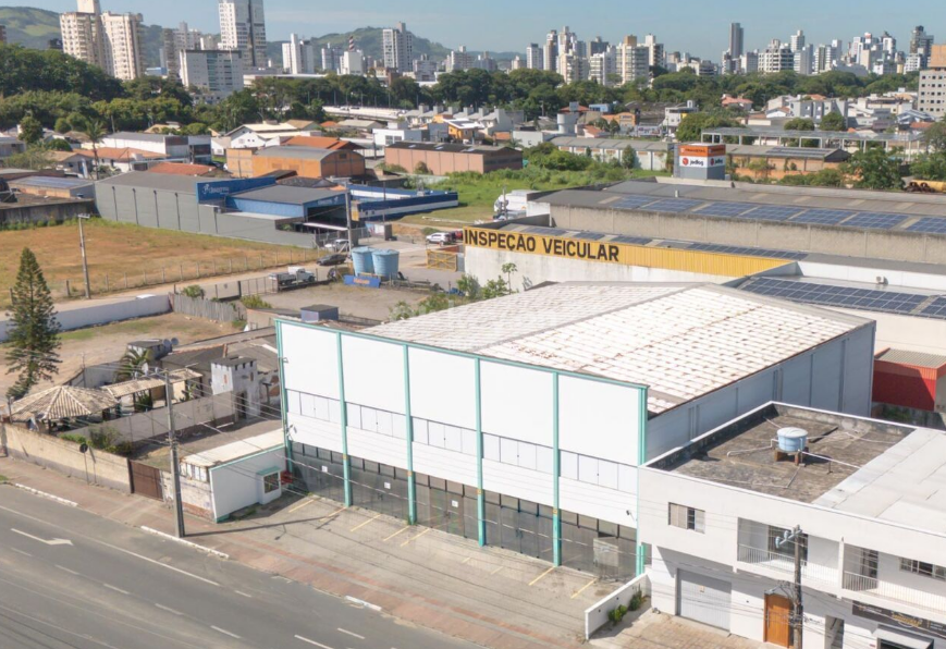 Sala comercial/galpão com 878m², disponível para locação no bairro Revoredo, em Tubarão/SC. O espaço oferece planta ampla e funcional, adequada para diferentes atividades comerciais ou logísticas.