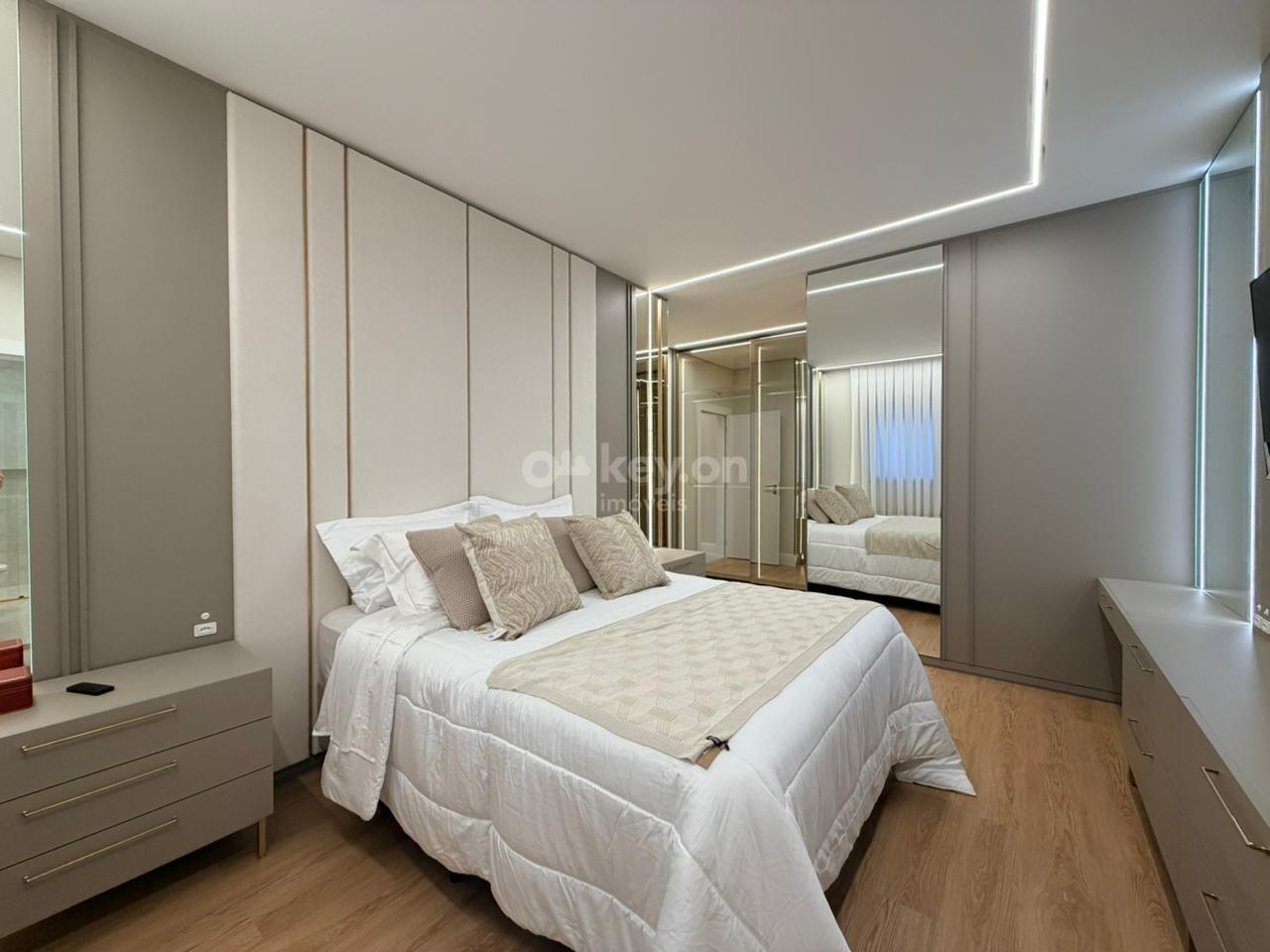 São 3 dormitórios, sendo 3 suíte com closet, além de escritório, sala de estar espaçosa, lavabo.